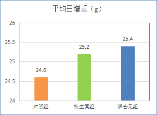 试验方案:600羽黄只肉鸡,分为3组,分别为对照组、抗生素组(金霉素40ppm+那西肽2.5ppm)拌料使用、润和元(1000g/t)。
